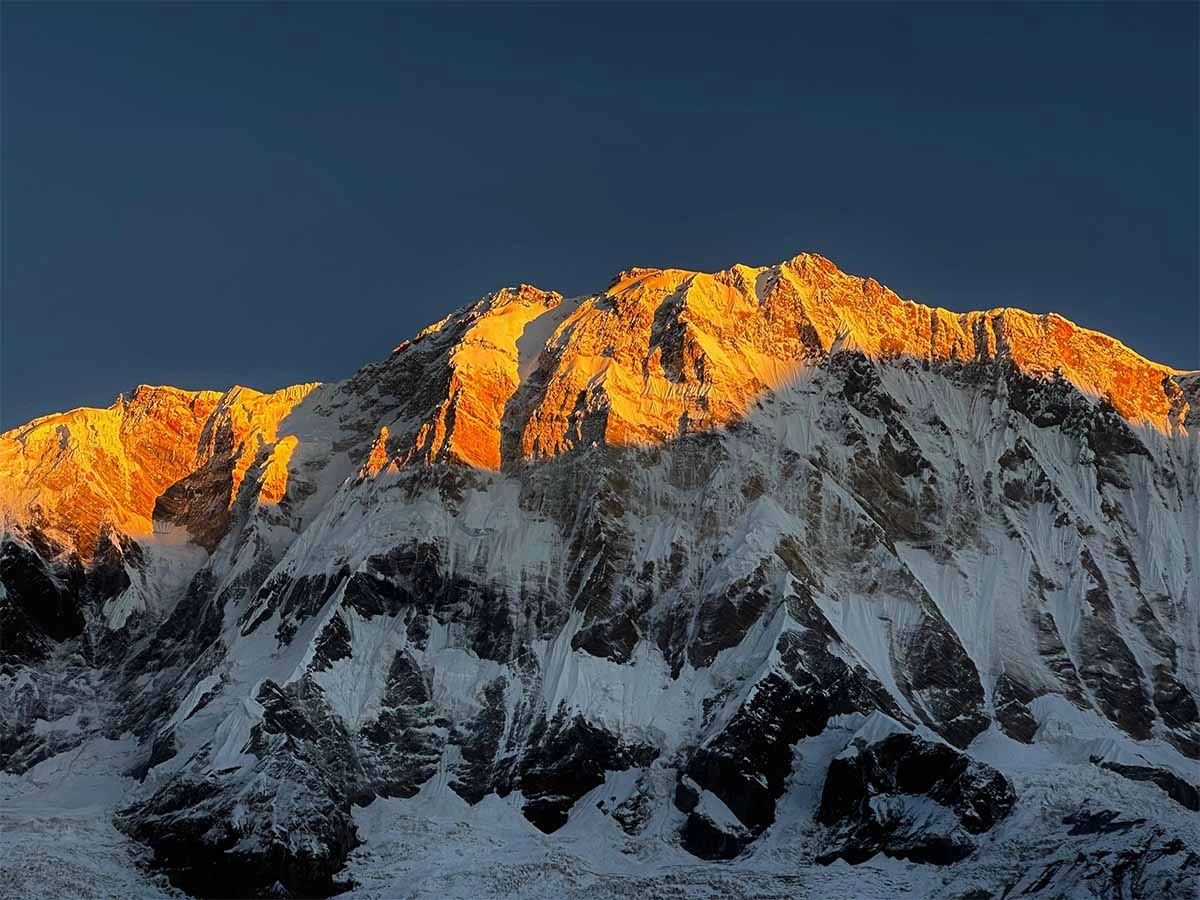 - Sunrise view of Annapurna I-IV, Dhaulagiri, Machhapuchhre, etc. from Annapurna Base Camp.